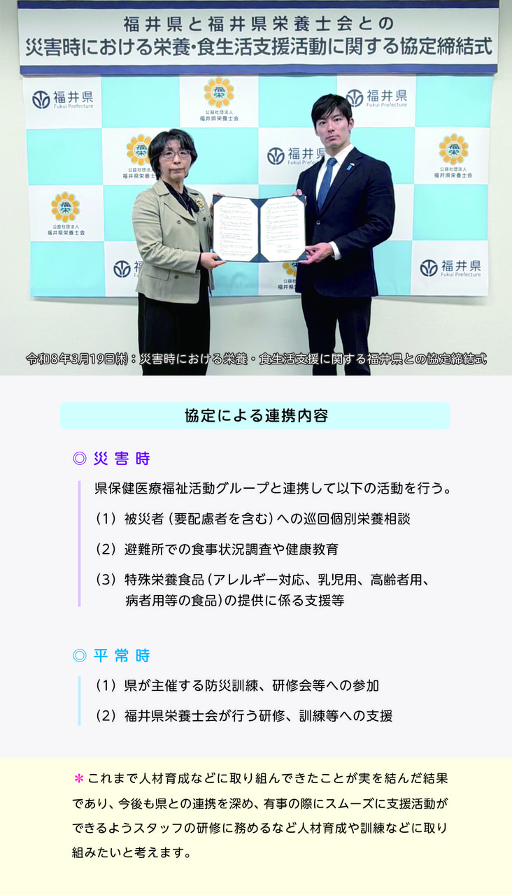 福井県と公益社団法人福井県栄養士会との“災害時における栄養・食生活支援活動に関する協定”を、令和8年3月19日に締結!