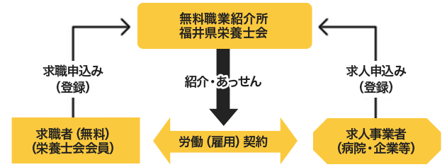 管理栄養士、栄養士の方を必要とする事業者と求職者をつなぐお手伝いをしております。 お仕事を探されている方、人材を探されている事業所の方々の多くのご利用をお待ちしております。職業紹介(あっせん)の流れ